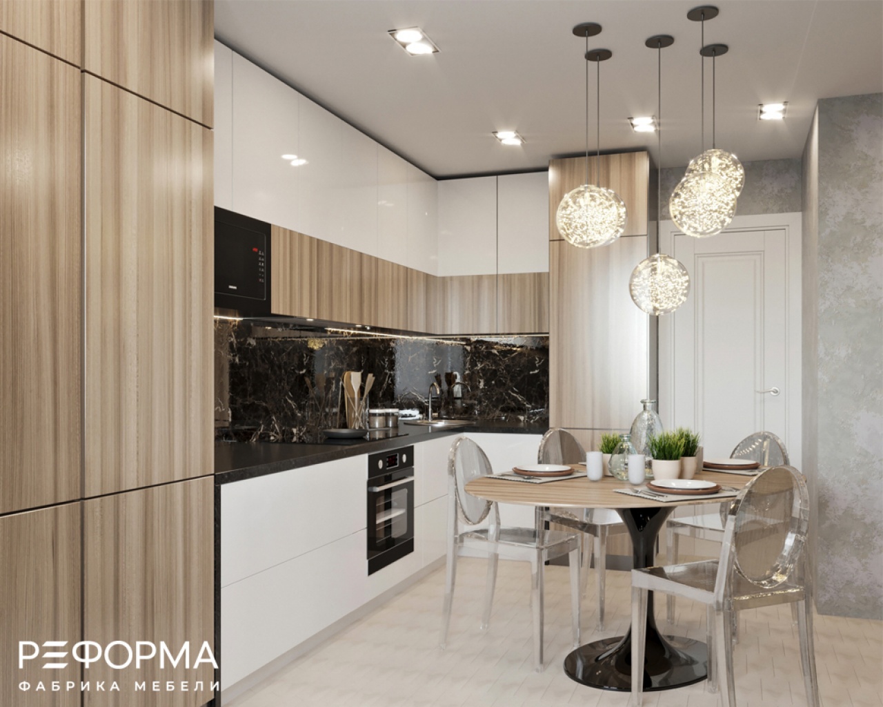 В комплектацию входят: сушка для посуды, врезка мойки и варочной поверхности. Бытовая техника в стоимость не входит.